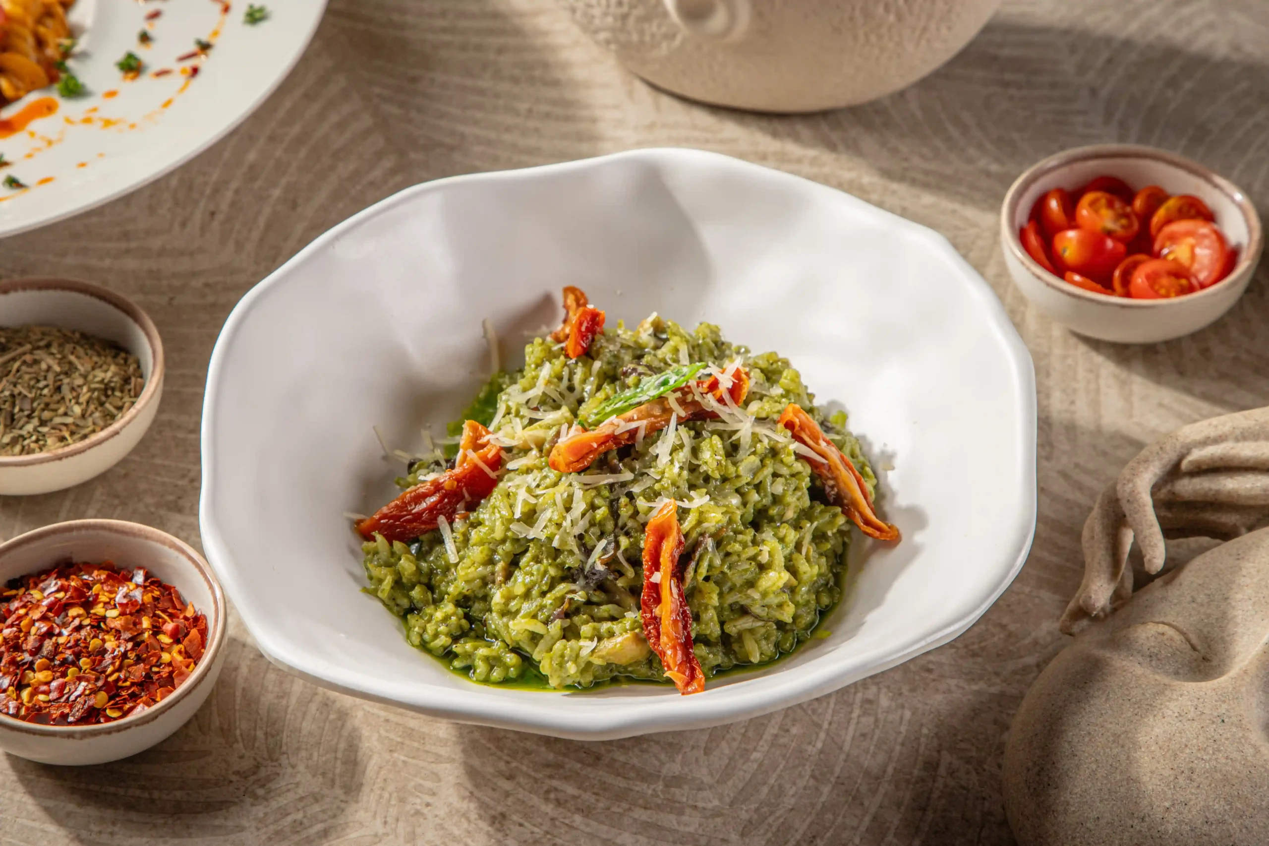 Rootopia Rooftop Veg Kitchen serves a wide range of vegetarian dishes prepared across multiple cuisines. The menu includes soups, salads, starters, sushi, dim sum, pizzas, pastas, mains, desserts, mocktails, smoothies, and coffee-based beverages.
